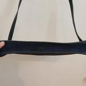 Canvas and leather, gold hardware, spacious clean interior, adjustable strap and the perfect size!
