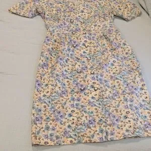 Vintage Floral Dress 100% Linen