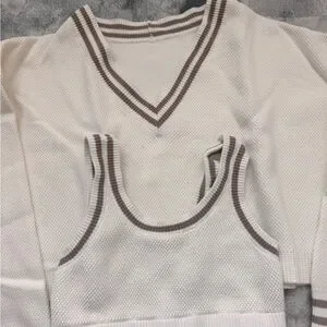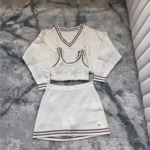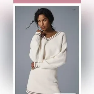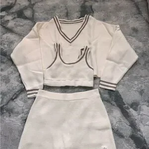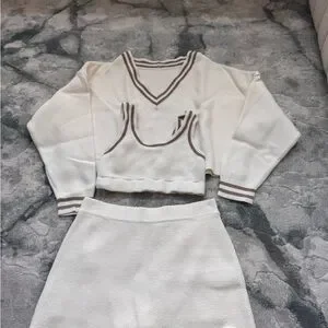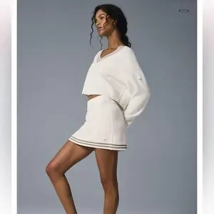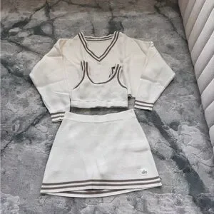 Alo Three piece Tennis Club Sweater Knit V-Neck Pullover , top & skirt
