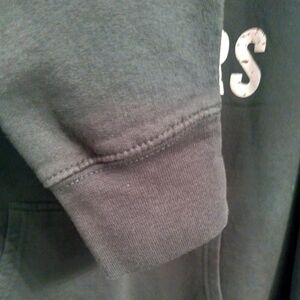 Stay cozy with the hoodie. It is in excellent pre-loved condition. A comfy cotton blend. Photo # 1 shows the color most accurately - forest green. Measurements were taken with hoodie laying flat: