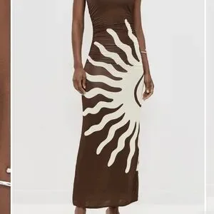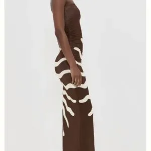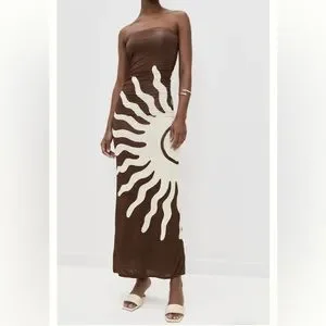 Revolve Cala de la Cruz Daphne Strapless Sunburst Mocca Maxi SideRuched Dress XS
