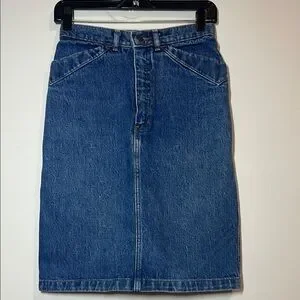 Chic 1990s denim pencil skirt by workforce the GAP cotton construction company. Timeless blue hue. Ideal for versatile styling. Unique pockets. 100% cotton