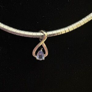 Safi Kilima Teardrop Tanzanite Pendant 18" Omega Necklace Silvertone NEW