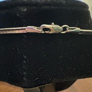 Pretty! Nice colored tanzanite stone. No discoloration to the chain.