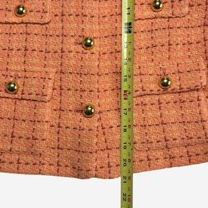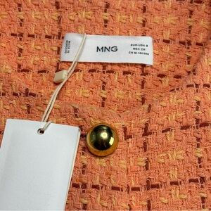 Mango MNG Short Tweed Blazer Orange Goldtone Button Details Size S NEW