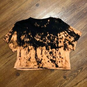 SHEIN Black & Orange Upcycled Tie-Dye Short Sleeve Boxy Top Size L