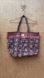 This stylish tote bag features a vibrant floral design in pink and blue. Perfect for adding a pop of color to any outfit.