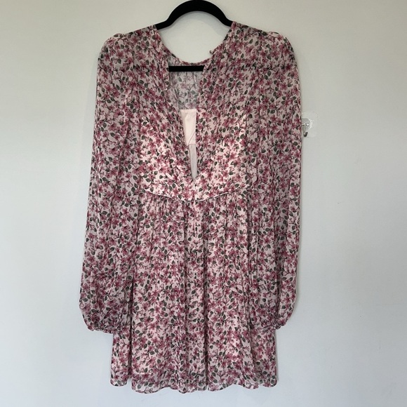 Ever New Pintuck Blouson Sleeve Ruched Mini Dress in Blush Ditsy NWT