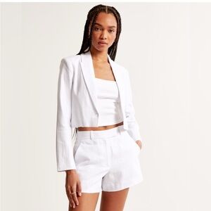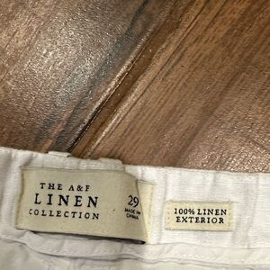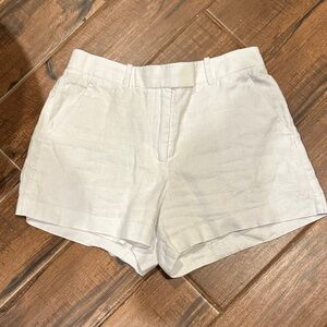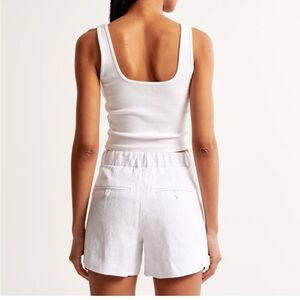 Great condition only worn a couple of times. Abercrombie and Fitch white High rise 4 inch (10 cm) shorts in our 100% linen fabric, featuring a partially elasticated waistband, functional fly, belt loops and hook and eye closure.