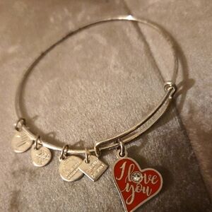 Alex and Ani Silver Bracelet with Red Heart Charm