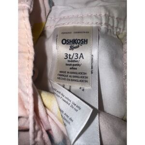 The OshKosh Lemon Overalls Denim Shortalls Overalls Romper in size 3T is a stylish and comfortable one-piece outfit for toddler girls. Made from a blend of cotton and denim, this overall features a cute pink color and is perfect for casual occasions. The set includes a pair of denim overalls with a playful design that is both practical and fashionable for active little ones. Ideal for everyday wear, this romper combines the best of both worlds with its denim fabric and overall style.