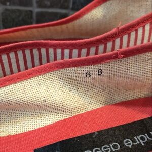 Andre Assous Sz 8 Cream Red Striper Canvas Espadrille Flats Slip On Runs Narrow