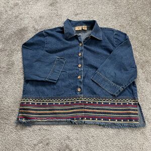 Mountain Lake Denim Jean Jacket Womens Petite Large Button Down Embroidered Boho