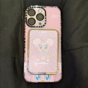 iphone 15 pro max plus Murakami Casetify case. used couple times, minor chip on bottom left of magsafe wallet. Wallet can hold up to two cards and also transforms to stand.