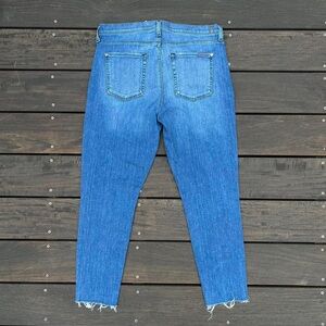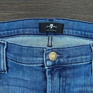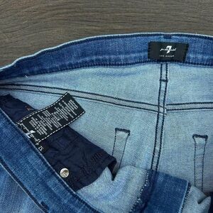 7 For All Mankind Blue Medium Wash Stretchy Skinny Jeans w/ Frayed Hem