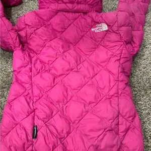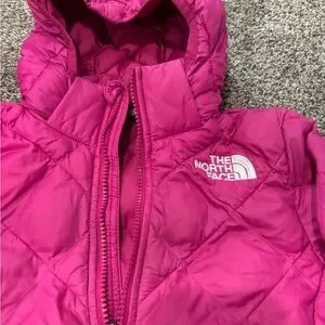 Vibrant fuchsia quilted jacket from The North Face. Ideal for cool weather.