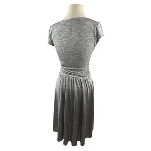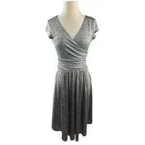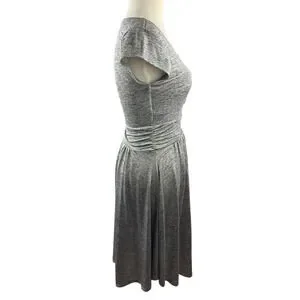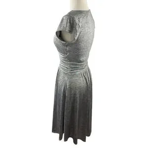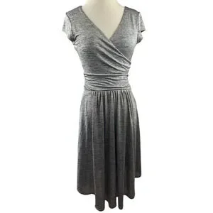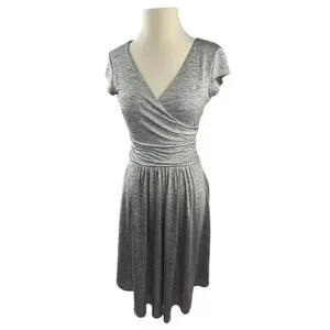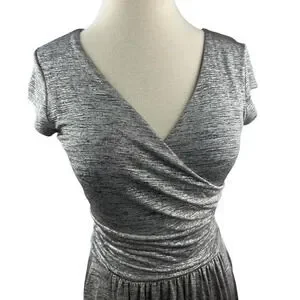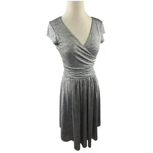 Maeve x Anthropologie Tamera Metallic Silver Shimmer Jersey Dress Faux Wrap XS