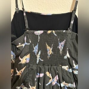 FREE PEOPLE Strapless BIRD PRINT Sunshine of Your Love pocket Mini Dress