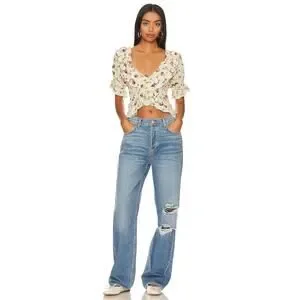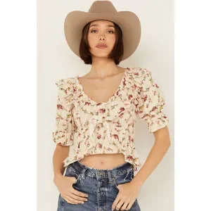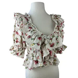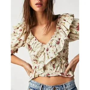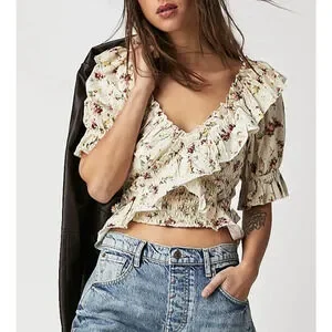 Free People Favorite Girl Top Romantic Floral Ruffle Smocked Boho Cottagecore Sm