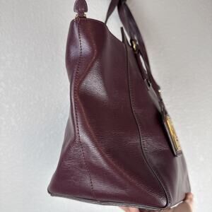Ralph Lauren Winford Tote Bag Shoulder Purse Laptop Zip Top Plum Purple Leather