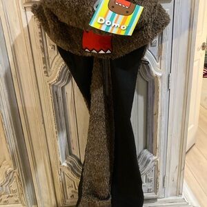 Brown and Black Hooded Scarf Hat with Cartoon Face