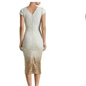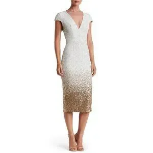 Dress the Population Size XS Cece Gold Ombre Sequin Midi Dress Wedding