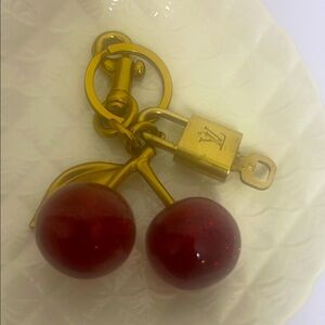 #311 Louis Vuitton Lock & Key w/ Unbranded Cherry Charm. Perfect decoration to your purse. Can be made as a necklace too.