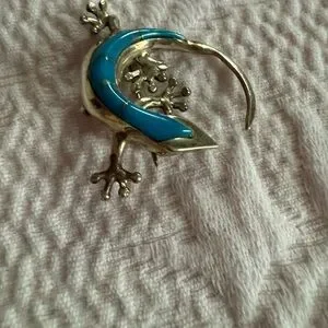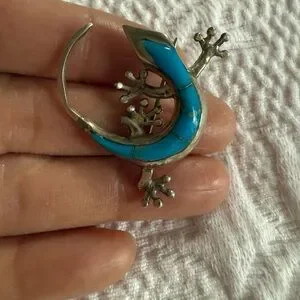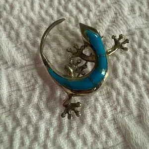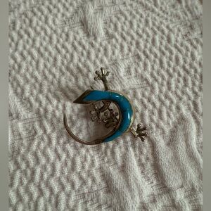 Elegant silver gecko brooch featuring striking blue details. A unique accessory for any ensemble.