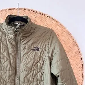 THE NORTH FACE WOMEN’S OLIVE GREEN ZIPPERED PUFFER OUTDOOR LIFESTYLE JACKET