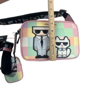 KARL LAGERFELD Pastel Checkered Crossbody Camera Bag Choupette Playful Chic