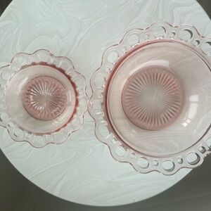 Bundle of 2. Anchor Hocking Lace Edge Pink Depression Glass Serving Bowl 1930s