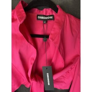 The Chaouiche Pink Tie Front Long Sleeve Top in size XSmall is a stylish blouse designed for women. Made by the brand Chaouiche, this top features a tie front closure and long sleeves, perfect for a feminine and chic look. The pink color adds a fun and vibrant touch to any outfit, making it a versatile and trendy piece for any wardrobe.