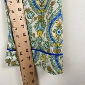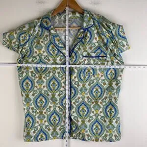 BedHead Damask Poplin Pajamas Size M Green Blu Cotton Long Sleeve Pants PJs Set