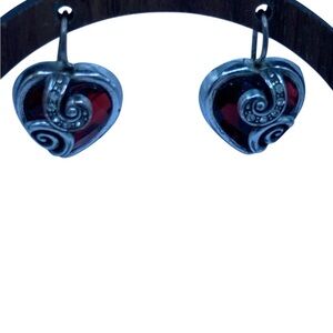 Brighton Red Crystal Heart Earrings French Hooks Rare Retired Cupids Love. Some wear on the metal but still stunning.