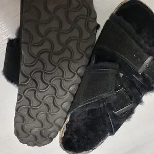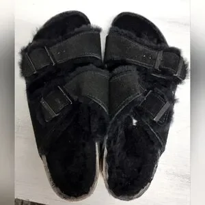 Birkenstock Black Fuzzy Slide
