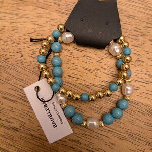 NWT! Set of Two BaubleBar Stretch Beaded Bracelets. Beautiful matching set in beads of faux gold, turquoise, and pearl. Boho, but with a little bit of glam!