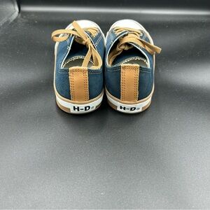 Classic style from Harley Davidson, these are like new and could be worn in so many ways! Sleek navy sneakers with tan laces. Perfect for active wear.