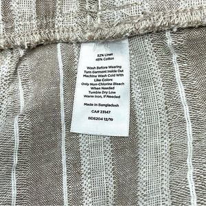 Linen and cotton blend. Front and back pockets.