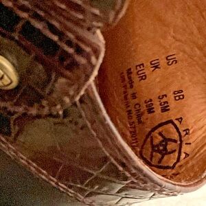 These Ariat Leather Clog Style Mules with Slingback in size 8B are versatile shoes suitable for casual, formal, and business occasions. Featuring an almond toe shape, slip-on closure, and low block heel, these mules provide comfort and breathability with their leather fabric and ankle strap detail. The black and brown color options add a stylish touch to these slip-on boots, making them a practical and fashionable choice for the summer, fall, and spring seasons. Made from high-quality leather with a durable rubber outsole, these mules are a reliable option for any cowgirl-inspired outfit. Please view photos…these are pre owned still lots of wear…