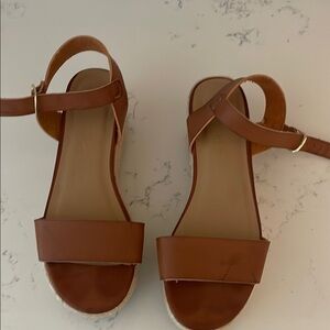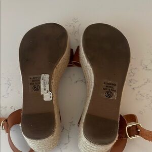 Step out in style with these chic tan wedge sandals. Perfect for any occasion, they offer both comfort and elegance.