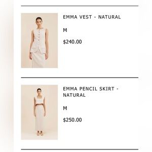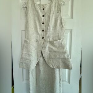 Posse Linen Emma vest and Emma pencil midi skirt set, natural, size M