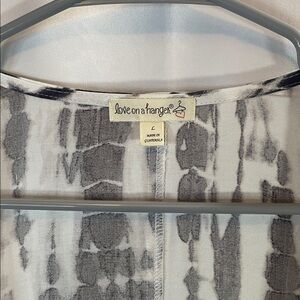 Chic open-front cardigan. Monochrome tie-dye design. Lightweight and elegant. Item has no stains or tears, very gently worn/used, does not have and closure buttons.
