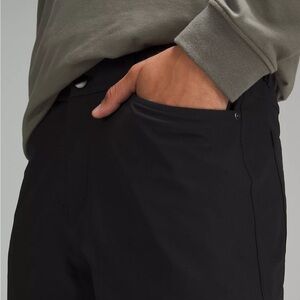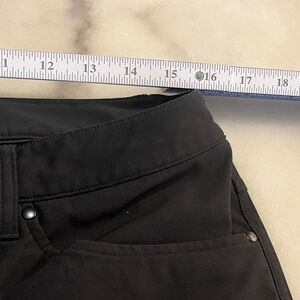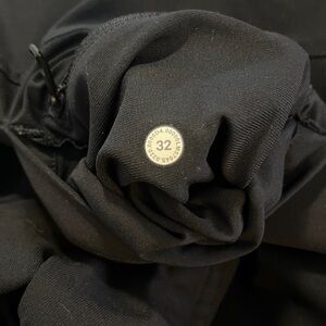 Sophisticated black stretchy classic Lululemon athletic material dress pants. Modern super comfortable fit. Ideal for any setting. Smart casual, fast dry. Size bubble is a 32. There’s a double front right pocket and double right back pocket with an inside zipper. Great for traveling!