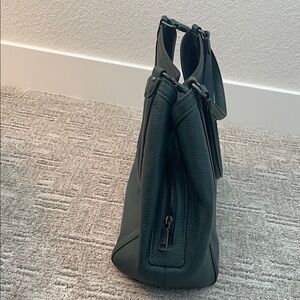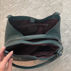 *ONLY USED A FEW TIMES* Sophisticated Coach shoulder bag in dark green leather. Features a front zip pocket and elegant design.
