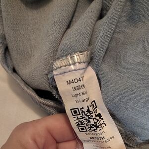 Stylish denim romper with short sleeves and a front zipper. Features a belted waist for a flattering fit.