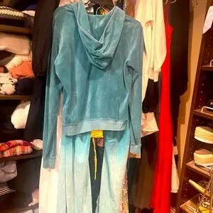 Stylish Juicy Couture original y2k teal ombré velour hoodie and joggers set. Comfortable and trendy. Zip has a hook that you can change charm pulls !