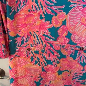 NWOT Lilly Pulitzer Pink and Teal Floral Top LARGE