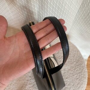 Chic black shoulder/crossbody bag with a white bow accent. Stylish and versatile for any occasion. A wonderful addition to your professional wardrobe. Makes a beautiful evening bag for weddings, date nights, girls night out. This bag is in near perfect condition with flawless zippers. Wear as a cross body or as a shoulder bag. Sleek colors and design matches just about any outfit. Authentic designer quality.