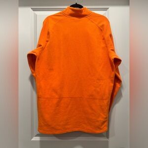 Vibrant orange jacket by The North Face. Features zip closure and chest pocket.