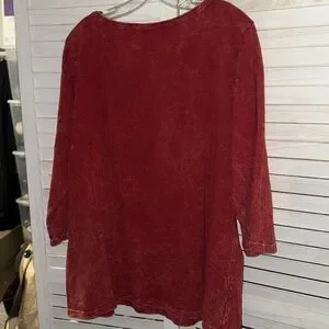 Westbound Cotton Distressed Red Floral with Subtle Bling Tunic Top. Size 2X
